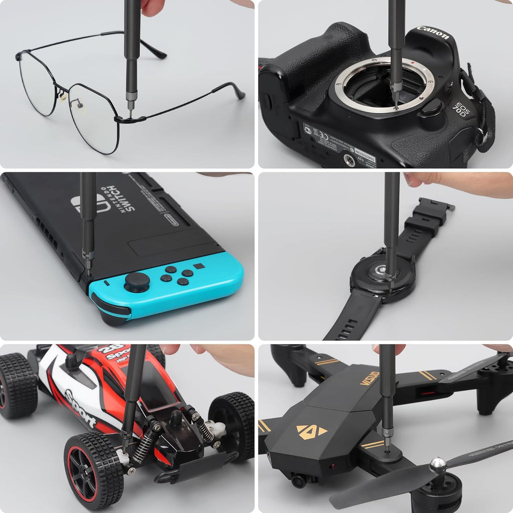 • Fit well for tiny screws of electronics like camera, watch, glasses, smartphone, iPhone, iPad, MacBook, laptop, tablet, game consoles, Switch, game console and more.